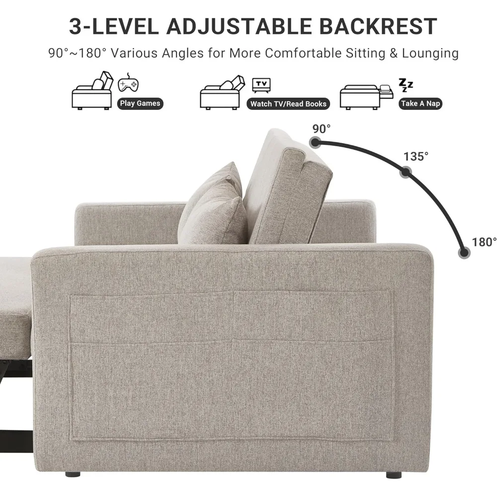 - Adjustable and Comfort: The sofa couch has a 3-level adjustable backrest, perfect for sitting, reclining, or sleeping. It’s ideal for small spaces, easily converting into a chaise lounge or bed that allows you to rest in different positions. As a sofa: 37.4"L x 55.5"W x 31.1"H. As a Bed: 69"L x 49"W x 16.55"H.