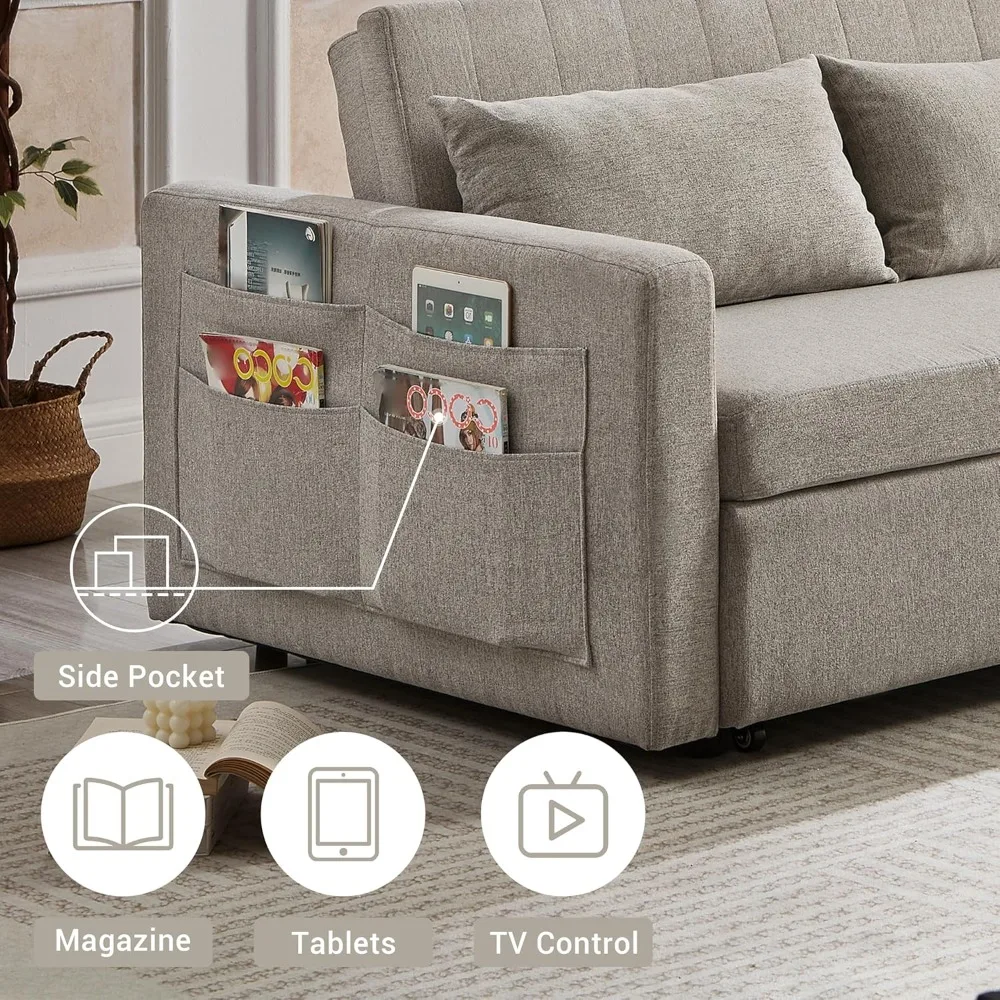 - Space-Efficient with Storage: This pull out sleeper couch includes a side storage bag that help you to store books, remote controls, or other small items. It can help to keep everything you need all in one place, making storage simple and easy.
